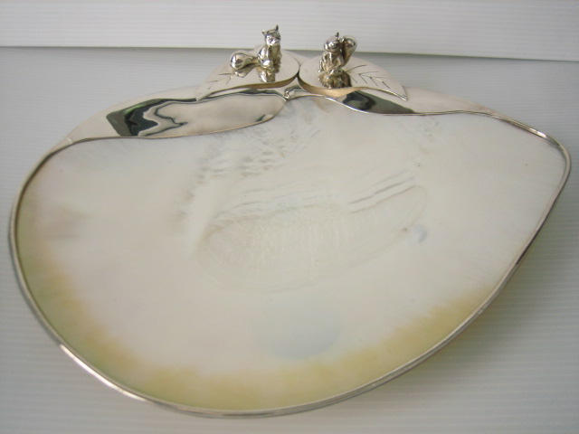 Sterling silver sea shell with silver trimming - mother-of-pearl